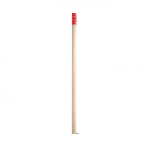 Drevená ceruzka s gumou. Dodáva sa NEZASTRÚHANÁ. Stupeň tvrdosti: HB.