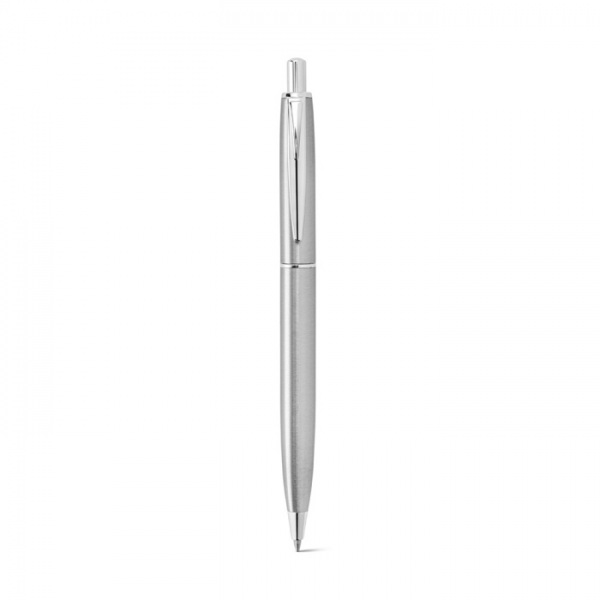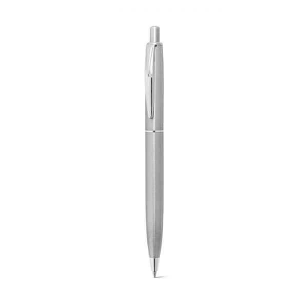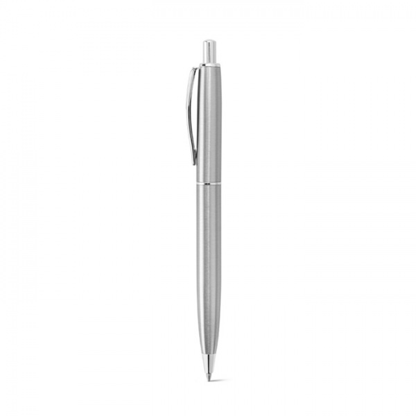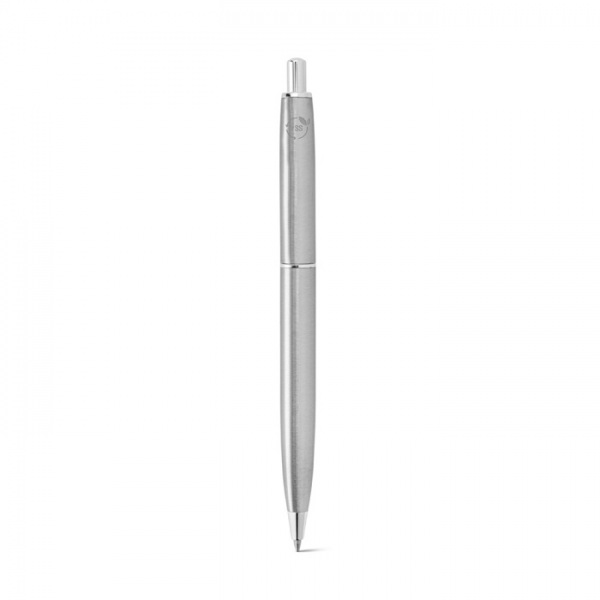 Guľôčkové pero z nehrdzavejúcej ocele (53 % recyklované) s lesklým telom. Modrá náplň. Pri laserovom gravírovaní je farba loga strieborná.