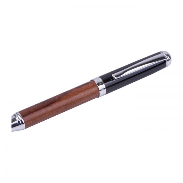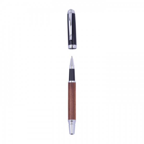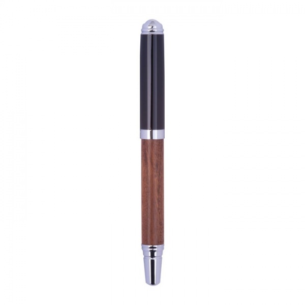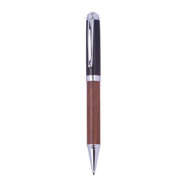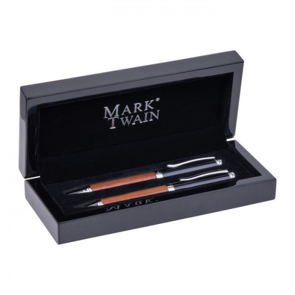 Sada pier Mark Twain, modrá náplň, pozostávajúca z guľôčkového pera (dĺžka písania 1 200 m) a roller pera (dĺžka písania 400 m) z dreva a nehrdzavejúcej ocele. Diskrétne gravírované Mark Twain logom na krúžku. Dodávané v čiernej kvalitnej krabičke
