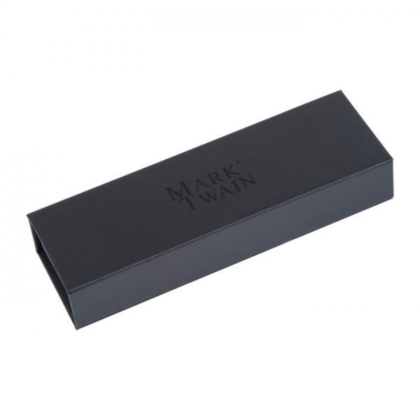 Guľôčkové pero Mark Twain z kovu s jemným logom Mark Twain na klipsni a dĺžkou písania 800 m, modrá náplň. Balené v sklápacej krabičke s lesklým logom Mark Twain