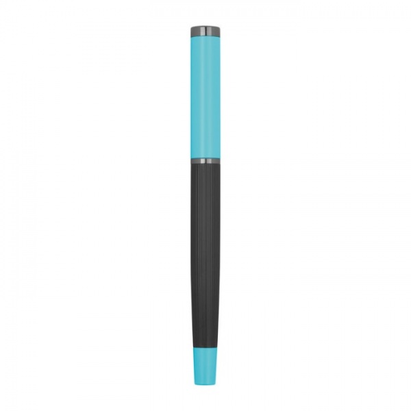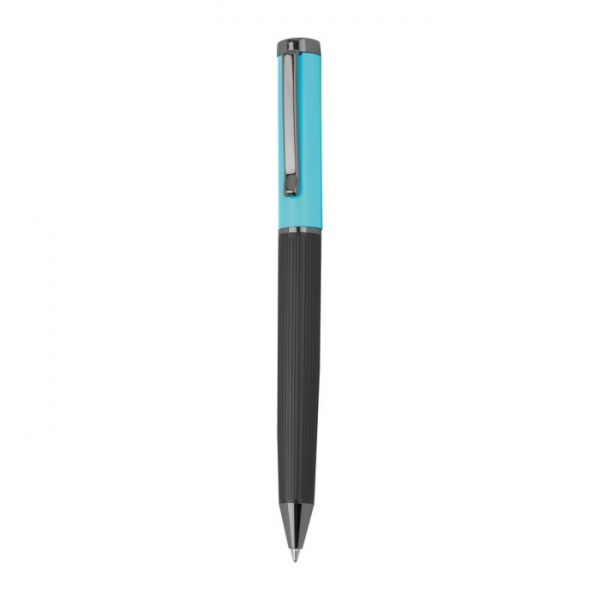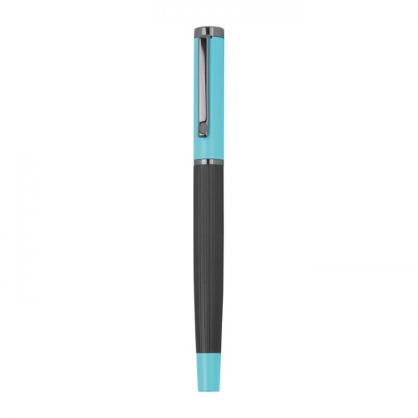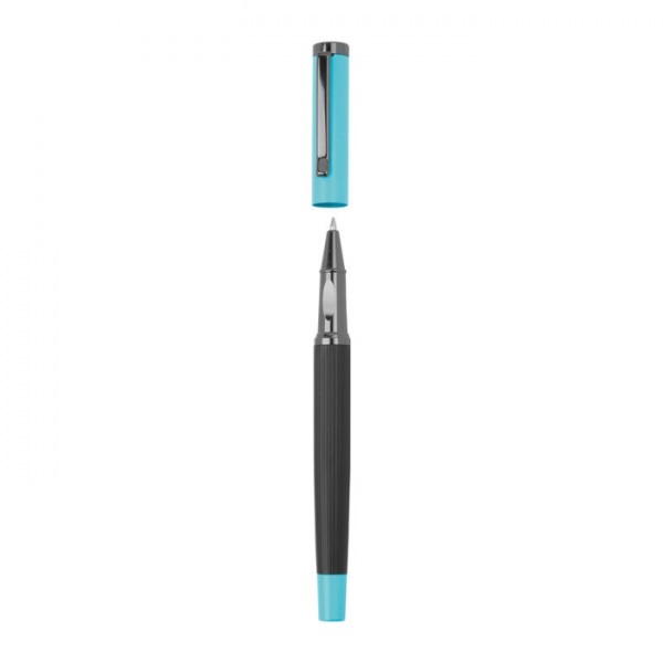 Kovová písacia súprava s modrou náplňou, pozostávajúca z guľôčkového pera (dĺžka písania 800 m) a roller pera (dĺžka písania 500 m) v farebne zladenom sklápacom puzdre