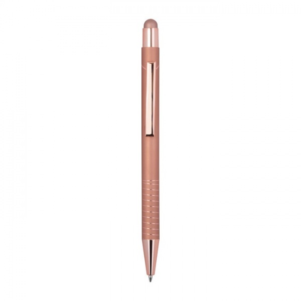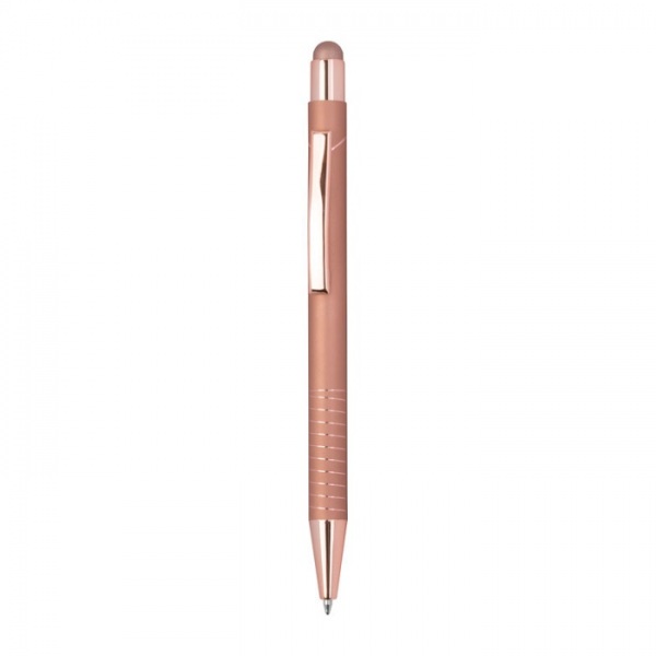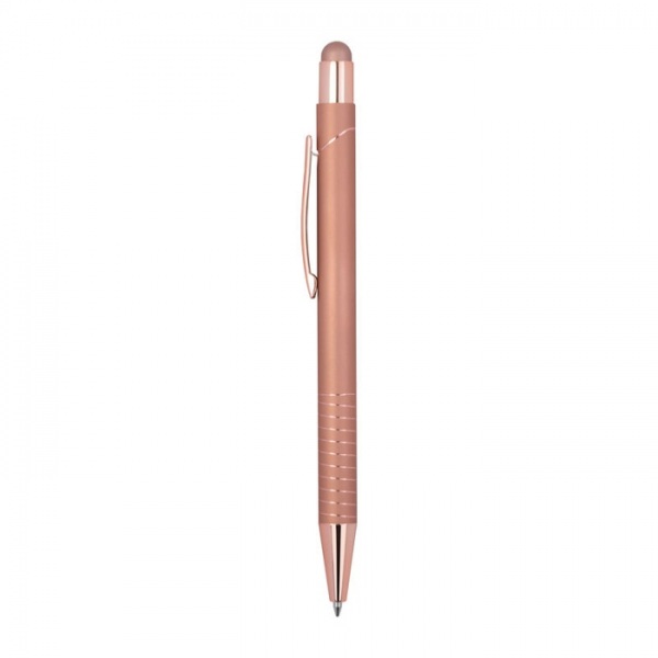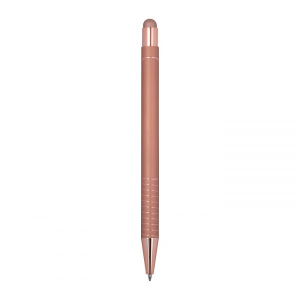 Guľôčkové pero s integrovaným stylusom pre smartfóny a tablety. Lesklý farebný zrkadlový povrch, modrá náplň