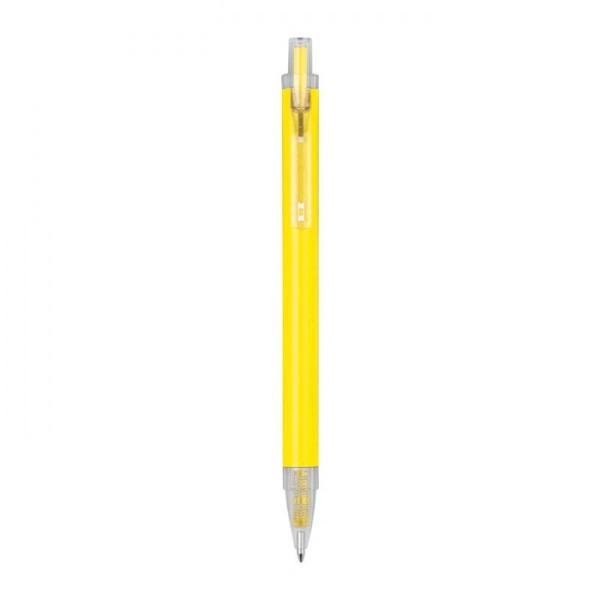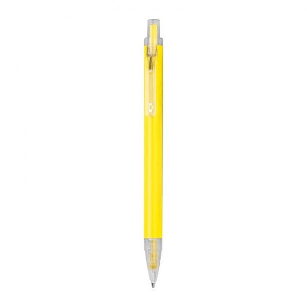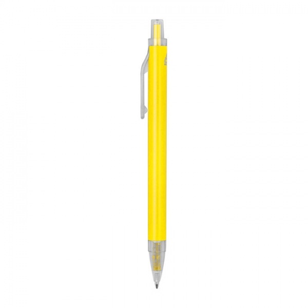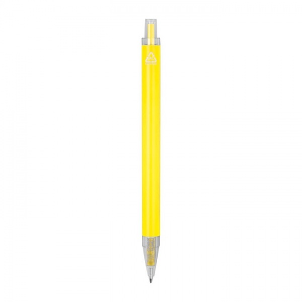 Guľôčkové pero vyrobené z recyklovaného hliníka a plastu (RPET) s priehľadným klipom a modrou atramentovou náplňou.