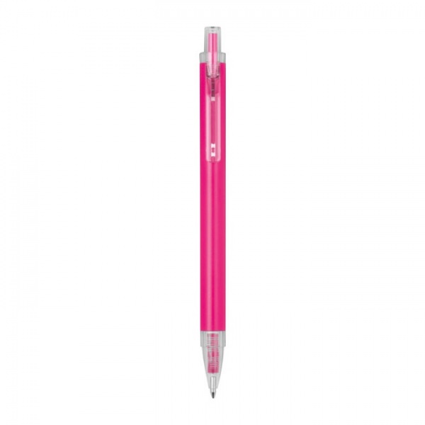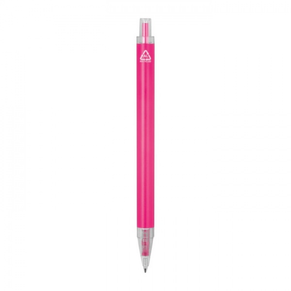 Guľôčkové pero vyrobené z recyklovaného hliníka a plastu (RPET) s priehľadným klipom a modrou atramentovou náplňou.