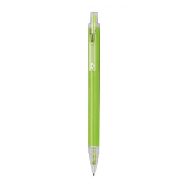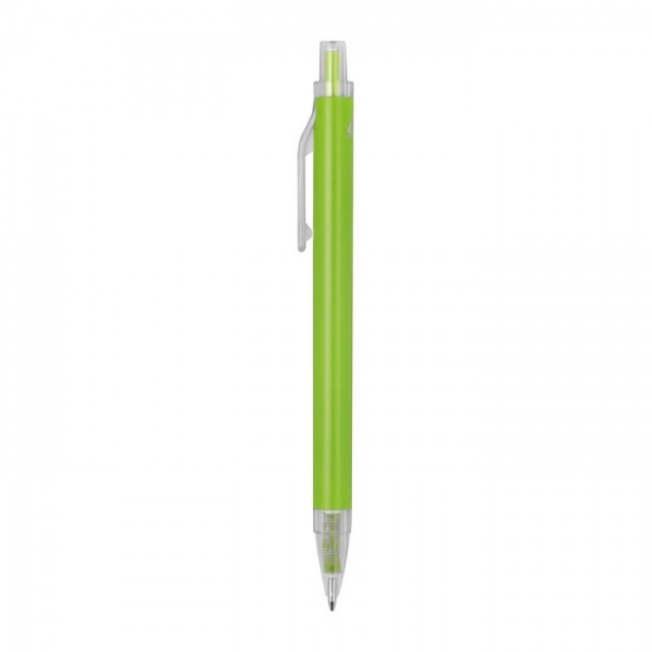 Guľôčkové pero vyrobené z recyklovaného hliníka a plastu (RPET) s priehľadným klipom a modrou atramentovou náplňou.