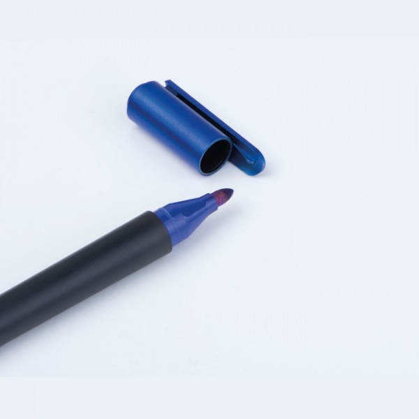 2v1 rezák s fixkou. Fixka píše farbou uzáveru.