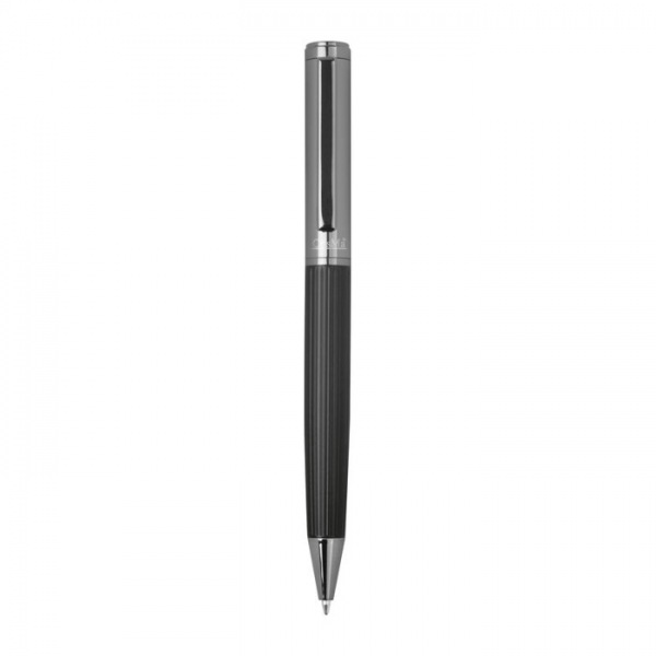 CrisMa guľôčkové pero s vrúbkovanou úchopovou časťou, modrou náplňou a dĺžkou písania približne 1 200 metrov – s malým logom CrisMa pod klipom .