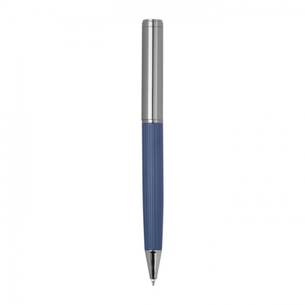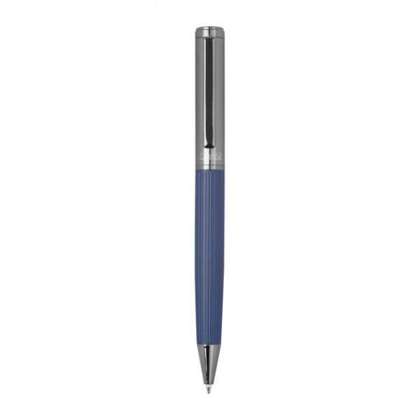 CrisMa guľôčkové pero s vrúbkovanou úchopovou časťou, modrou náplňou a dĺžkou písania približne 1 200 metrov – s malým logom CrisMa pod klipom .
