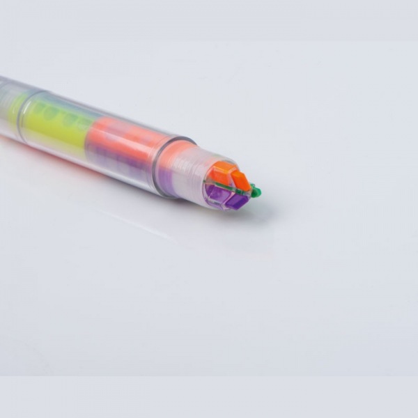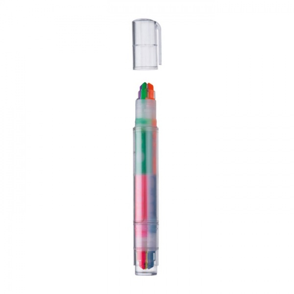 Sada zvýrazňovačov so 6 rôznymi farbami. Tri farby na každej strane.