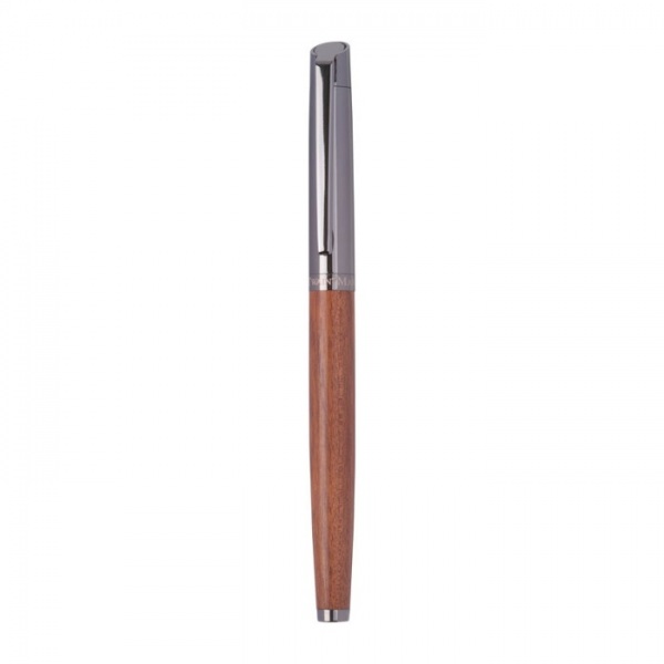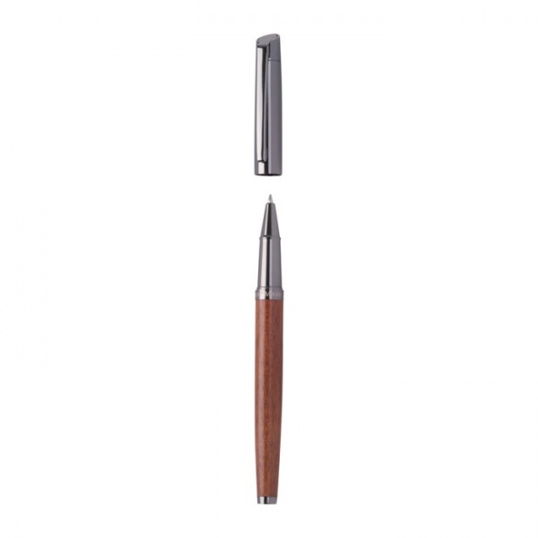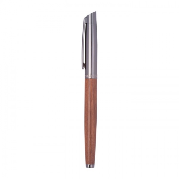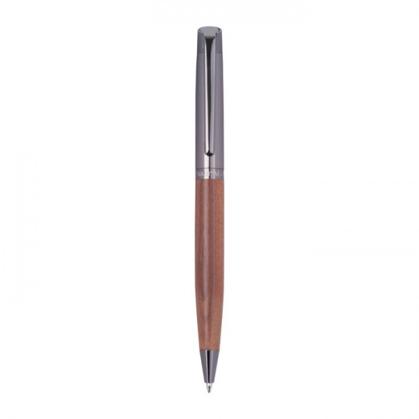 Písacia sada Mark Twain vyrobená z nehrdzavejúcej ocele a dreva. Guľôčkové pero s modrým atramentom, dĺžka písania 1200 m; roller s modrým atramentom, dĺžka písania 400 m.