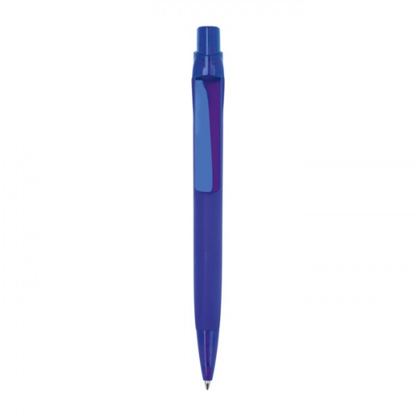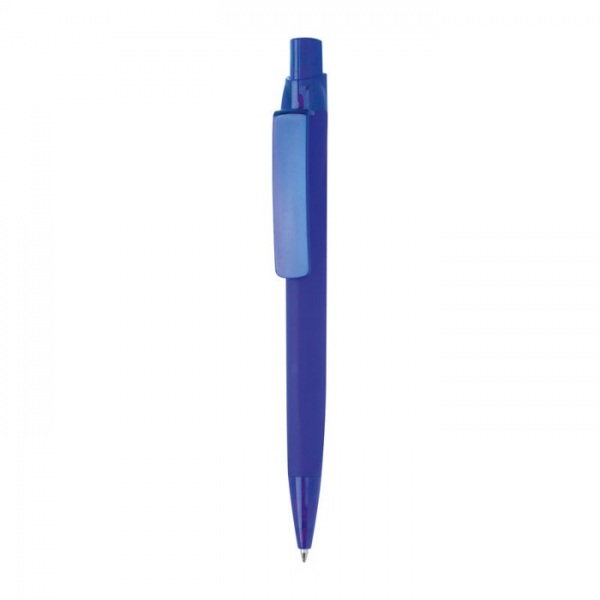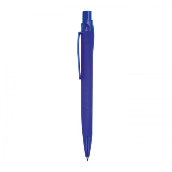 Pogumované plastové guľôčkové pero s veľkokapacitnou modrou náplňou (dĺžka písania cca 800 m).