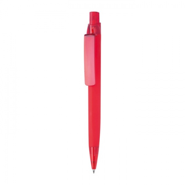 Pogumované plastové guľôčkové pero s veľkokapacitnou modrou náplňou (dĺžka písania cca 800 m).