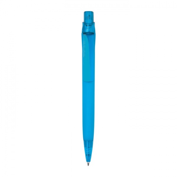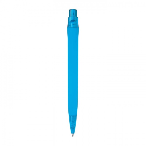 Pogumované plastové guľôčkové pero s veľkokapacitnou modrou náplňou (dĺžka písania cca 800 m).