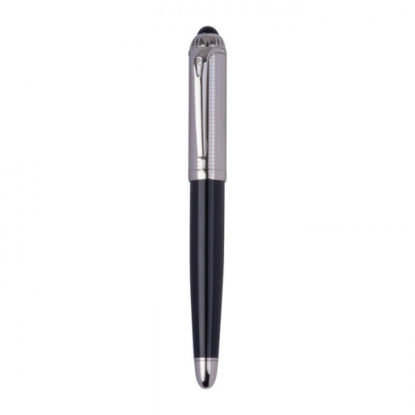 Roller Ferraghini z nehrdzavejúcej ocele, s modrým atramentom a s charakteristickým “F” na klipse, dĺžka písania až 400 m. Balené v kvalitnej krabičke