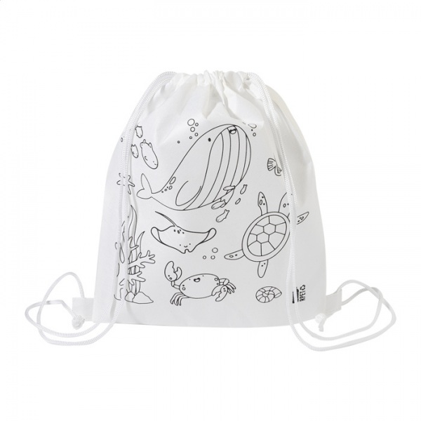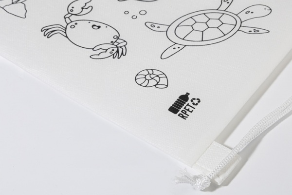 Vak so sťahovacou šnúrkou pre deti z netkanej RPET tkaniny s 5 voskovkami na vyfarbenie.