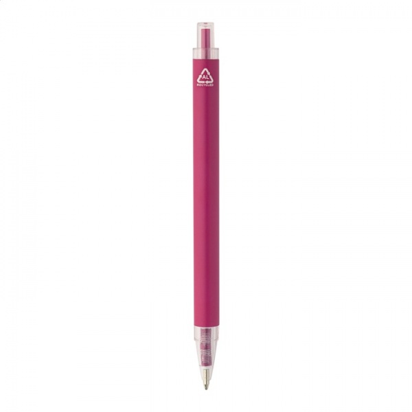 Guľôčkové pero z recyklovaného hliníka s matným telom a priehľadnými RPET časťami. S modrou náplňou.