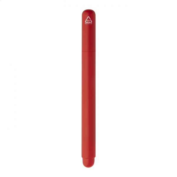Gélové pero z recyklovaného ABS materiálu s viečkom. S modrou gélovou náplňou.