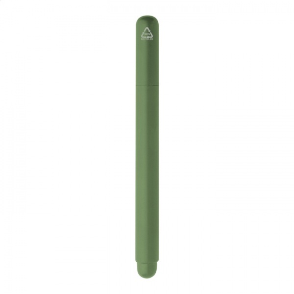 Gélové pero z recyklovaného ABS materiálu s viečkom. S modrou gélovou náplňou.