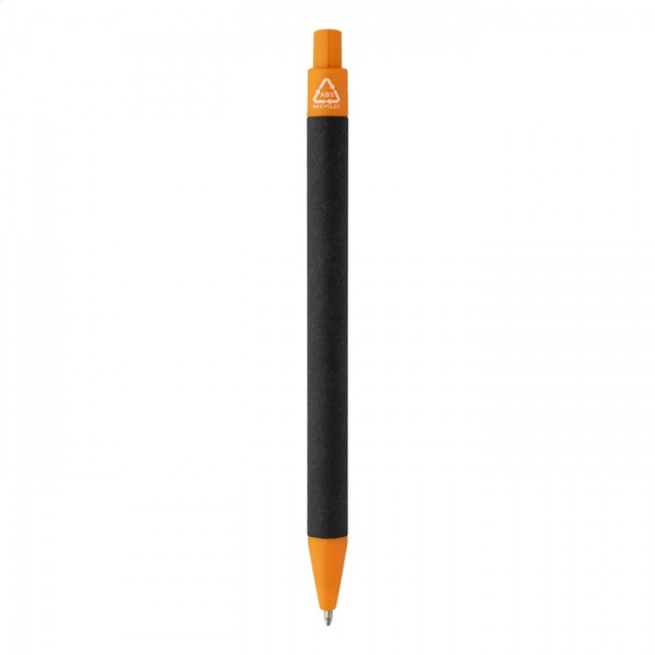 Guľôčkové pero z recyklovaného papiera s čiernym telom a recyklovanými ABS dielmi. S modrou náplňou.
