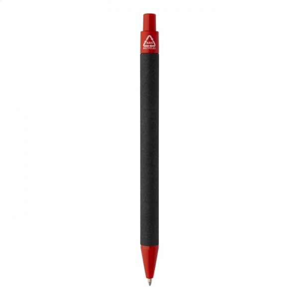 Guľôčkové pero z recyklovaného papiera s čiernym telom a recyklovanými ABS dielmi. S modrou náplňou.