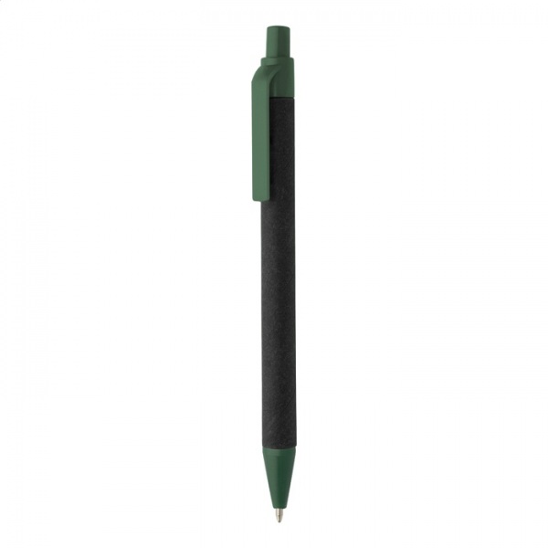 Guľôčkové pero z recyklovaného papiera s čiernym telom a recyklovanými ABS dielmi. S modrou náplňou.