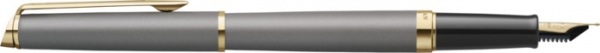Toto plniace pero má nadčasový neutrálny štýl, elegantnú, štíhlu siluetu a je vyrobené z najkvalitnejších materiálov. Telo a vršok majú luxusný metalický lakovaný povrch. Precízne vyrobená dvojito vetvená spona so zlatisto svetlou vrstvou. Modrá náplň.