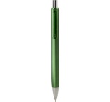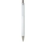 Guľôčkové pero z recyklovaného ABS plastu s certifikáciou RCS, má lesklý kovový povrch s chrómovými akcentmi. Hladký mechanizmus a atramentová Semi-Gél náplň. Farba atramentu pera: čierna. Dĺžka písania: 500 m. Veľkosť hrotu: 0,7 mm.