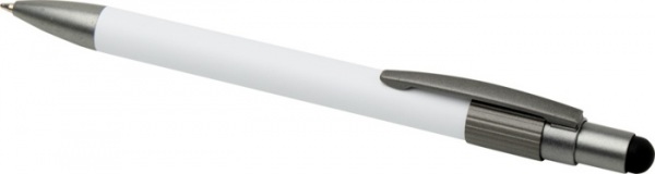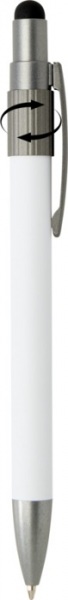 Guľôčkové pero so stylusom a fidget spinnerom z recyklovaného hliníka s certifikáciou RCS, má hladký stláčací mechanizmus. Integrovaný fidget spinner na hornej strane pomáha na uvoľnenie stresu. Modrá náplň, dĺžka písania: 1000 metrov.