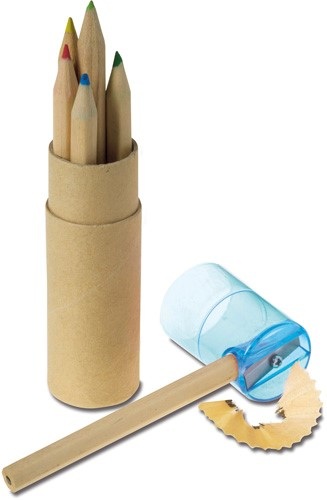 Kartónová a ABS tuba so 6 farebnými ceruzkami a strúhadlom