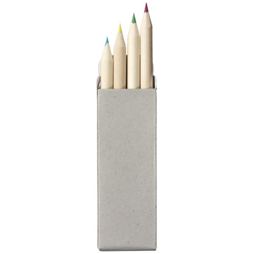 4 pastelky Tullik v papierovej krabičke. Potlač nie je možná na jednotlivých komponentoch, iba na krabičku. Materiál: papier a topoľové drevo.