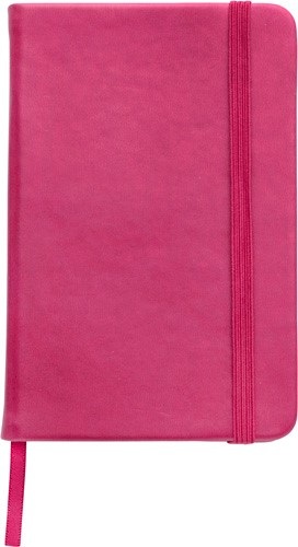 Zápisník A5 s 96 stranami, záložkou zo stužky a elastickou gumičkou na zatváranie.