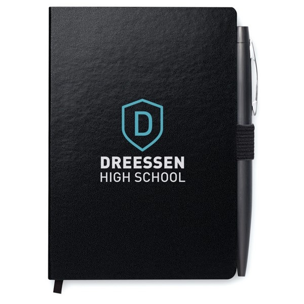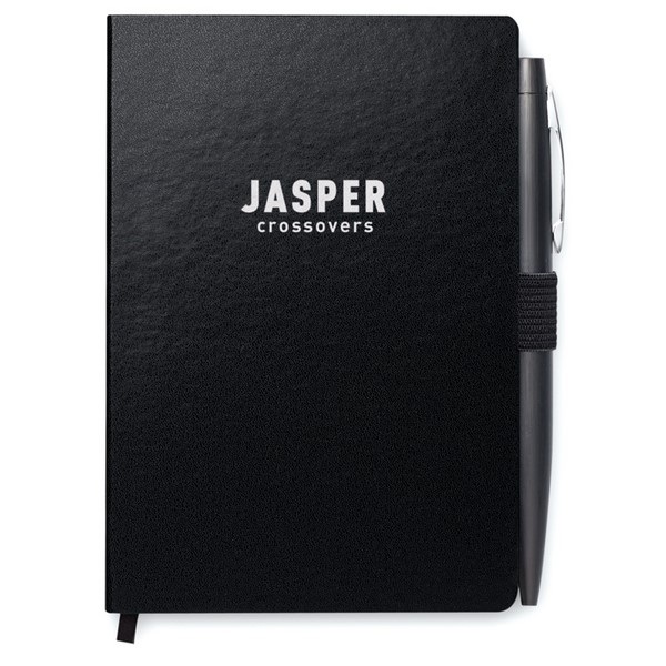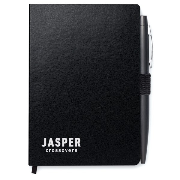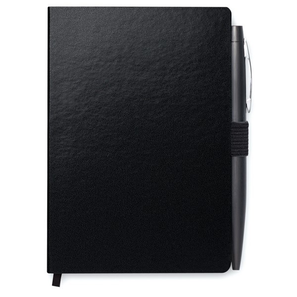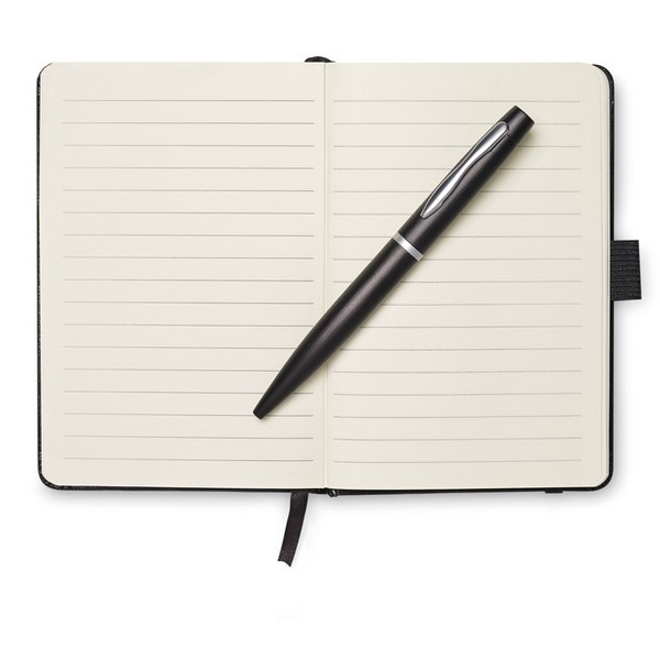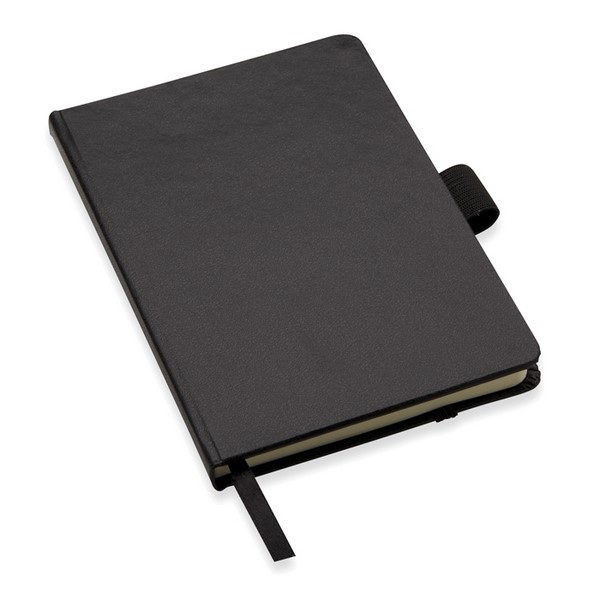 Zápisník A6 z kartónu, 72 strán linajkového papiera, elastickou gumičkou a stužkou.