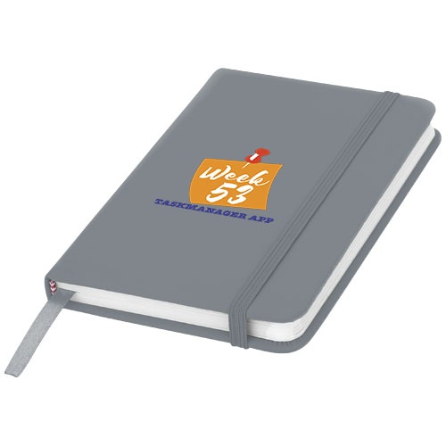 Zápisník formátu A6 má mäkké dosky a 96 linajkových stránok s gramážou 60 g/m2. Zápisník obsahuje záložku a gumičku v rovnakej farbe.