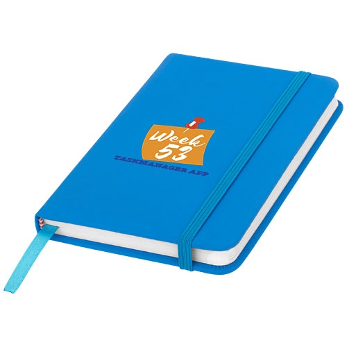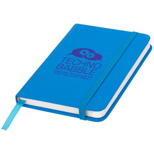 Zápisník formátu A6 má mäkké dosky a 96 linajkových stránok s gramážou 60 g/m2. Zápisník obsahuje záložku a gumičku v rovnakej farbe.