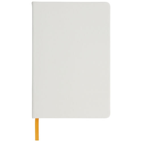 Biely zápisník A5 s farebnou páskou, s farebným elastickým zatváraním a stužkou.