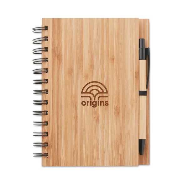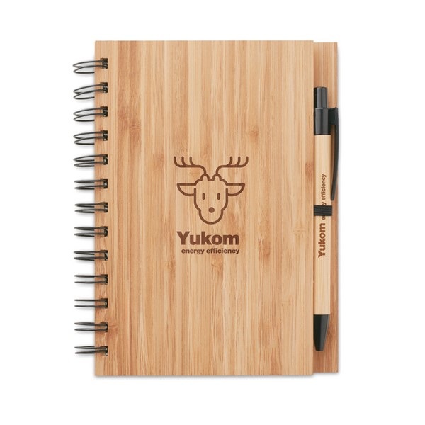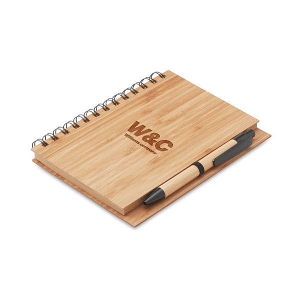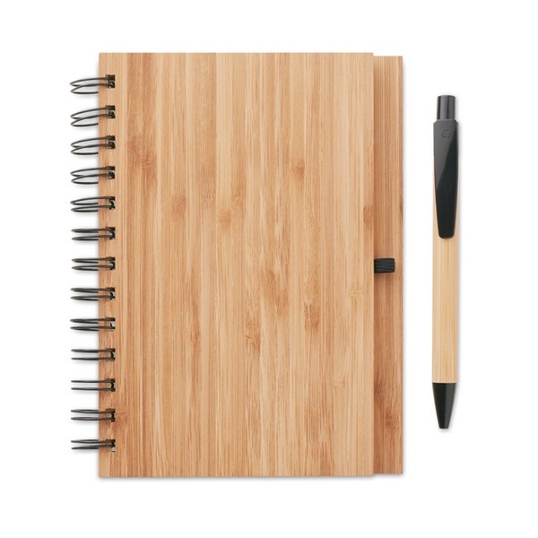 Zápisník s bambusovými doskami obsahujúce 70 recyklovaných stránok.