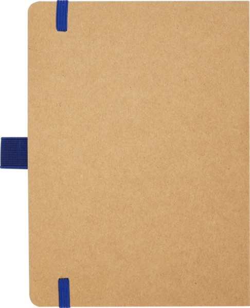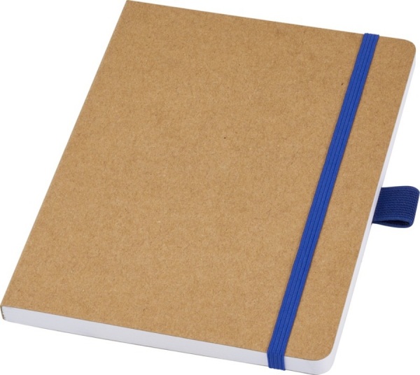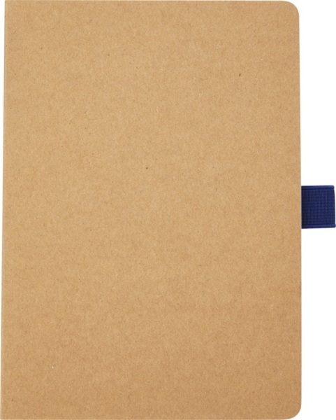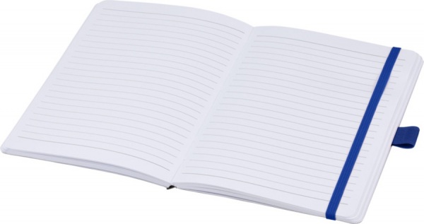 Zápisník z recyklovaného linajkového papiera (70 g/m2) so zaoblenými rohmi, farebnou elastickou gumičkou a pútkom na pero.