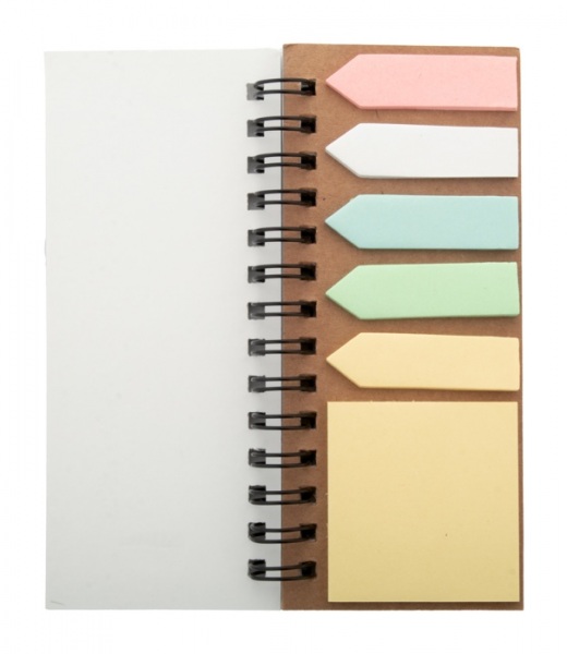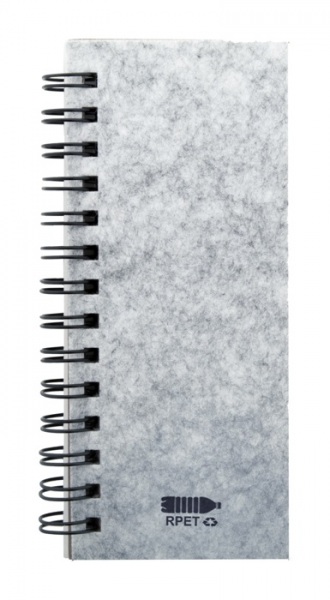 Špirálový blok potiahnutý plsťou RPET so 40 linajkovými listami z recyklovaného papiera, 25 lepiacimi papierikmi a 125 značkami stránok (v 5 rôznych farbách).