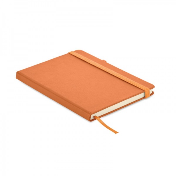 Zápisník formátu A5 s obálkou zo 70% recyklovanej predprodukčnej kože a 30% latexového PU. Recyklovaný papier, 192 linkovaných strán (96 listov). Elastická gumička a držiak na pero.