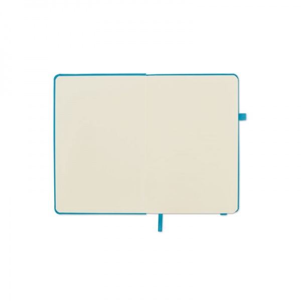 Zápisník formátu A5 s obálkou zo 70% recyklovanej predprodukčnej kože a 30% latexového PU. Recyklovaný papier, 192 linkovaných strán (96 listov). Elastická gumička a držiak na pero.