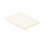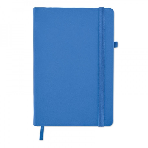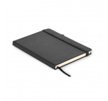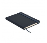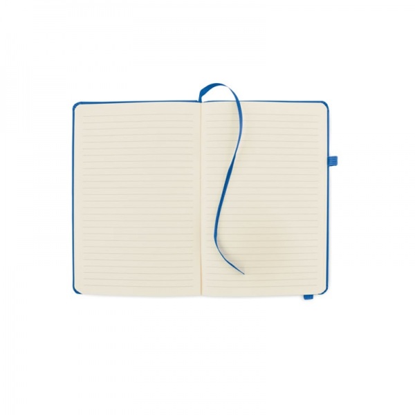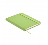 Zápisník formátu A5 s obálkou zo 70% recyklovanej predprodukčnej kože a 30% latexového PU. Recyklovaný papier, 192 linkovaných strán (96 listov). Elastická gumička a držiak na pero.