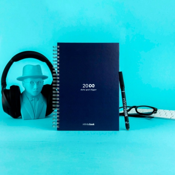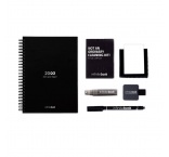 Sada obsahuje nekonečný diár A5, čistiacu súprava (prázdna fľaštička s rozprašovačom, hubka a handrička), fixku a držiak. Diár ma prakticky rozdelené vnútro a všetok napísaný obsah sa dá ľahko vymazať. Vyrobené v EÚ.