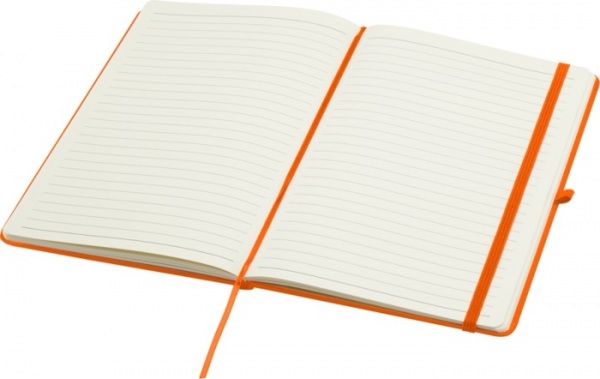 Zápisník Spectrum Plus A5 s pevnou obálkou a zaoblenými rohmi má na dotyk mäkkú obálku a 80 linkovaných listov v krémovej farbe s gramážou 70 g/m2. Zápisník má pútko na pero, elastický uzáver, záložku a rozšíriteľné vrecko.