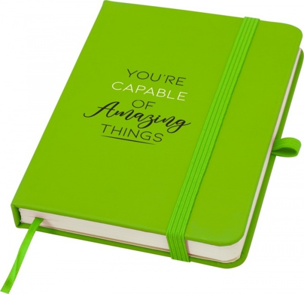 Zápisník Spectrum Plus A6 s pevnou obálkou a zaoblenými rohmi má na dotyk mäkkú obálku a 80 linkovaných listov v krémovej farbe s gramážou 70 g/m2. Zápisník má pútko na pero, elastický uzáver, záložku a rozšíriteľné vrecko.