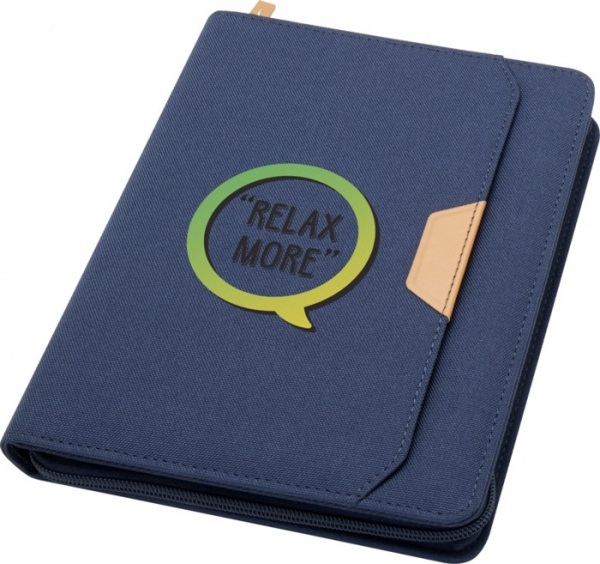 Portfólio A5 so zaoblenými rohmi je praktickou pomôckou do každej kancelárie a je vyrobené z recyklovaného plastu. Disponuje 64 linajkovými listami papiera v krémovej farbe s gramážou 80 g/m2, zapínaním na zips, pútkom na pero a rozšíriteľným vreckom.