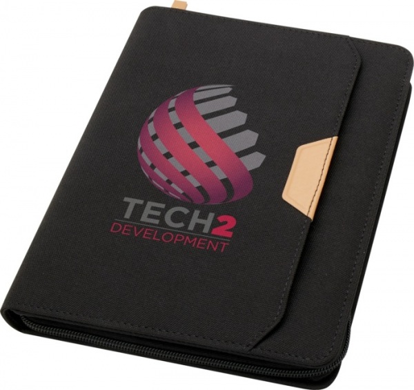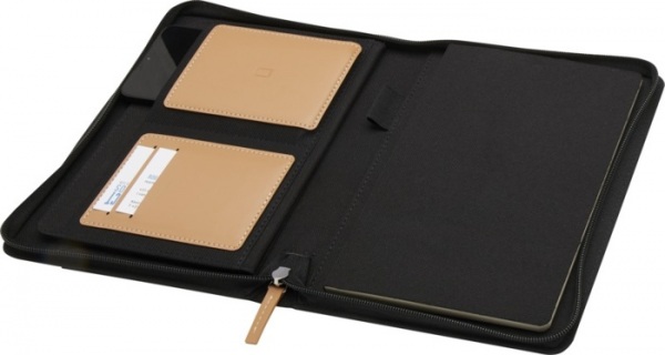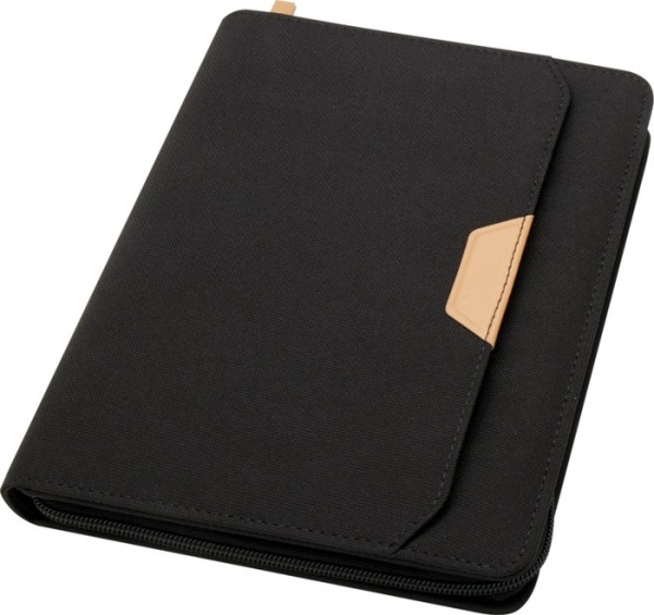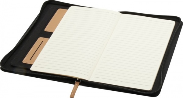 Portfólio A5 so zaoblenými rohmi je praktickou pomôckou do každej kancelárie a je vyrobené z recyklovaného plastu. Disponuje 64 linajkovými listami papiera v krémovej farbe s gramážou 80 g/m2, zapínaním na zips, pútkom na pero a rozšíriteľným vreckom.