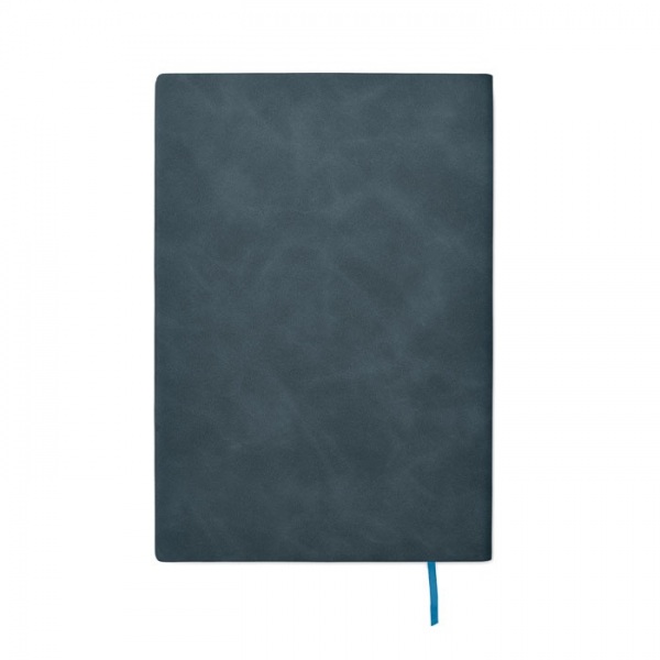 Zápisník A5 s mäkkým dymovým rebrovaným obalom z PU zo 40 % recyklovaného materiálu a 60 % PU s jednofarebnou PU záplatou. 160 linajkových strán, 70 g/m2 recyklovaný papier (80 listov). Farebne zladená polyesterová stuha.