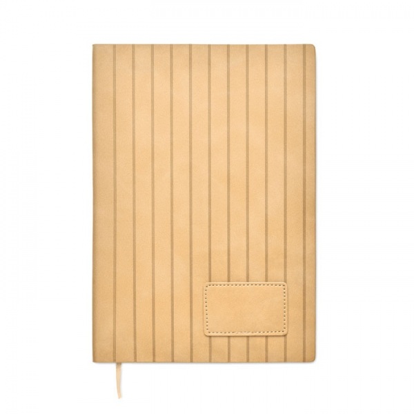 Zápisník A5 s mäkkým dymovým rebrovaným obalom z PU zo 40 % recyklovaného materiálu a 60 % PU s jednofarebnou PU záplatou. 160 linajkových strán, 70 g/m2 recyklovaný papier (80 listov). Farebne zladená polyesterová stuha.
