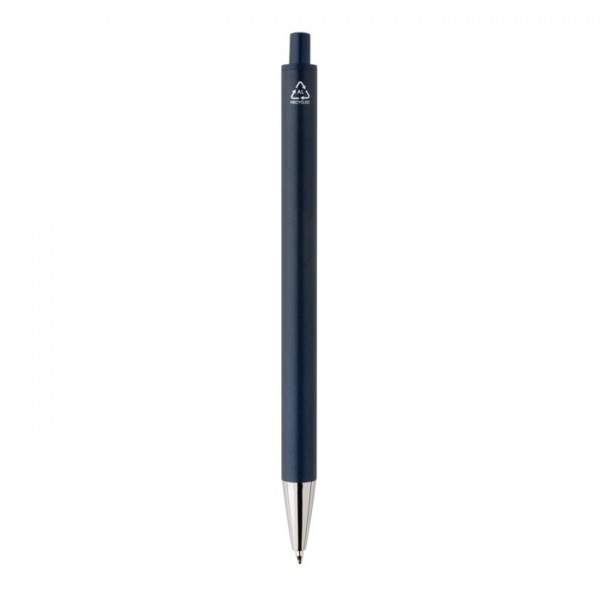 Guľôčkové pero s modrou náplňou s garantovanou dĺžkou písania 1200m. Vyrobená z RCS recyklovaného hliníka. RCS (Recycled Claim Standard) je globálny štandard, ktorý umožňuje overiť použitie materiálov. Celkový podiel recyklátu: 23%.