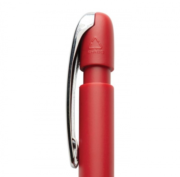 Gulôčkové pero v chromovom prevedení. Pero obsahuje približne 1200 metrov dĺžky písania a je vybavené nemenckým atramentom Dokumental® v modrej farbe s TC guľôčkou pre ultra hladké písanie.Vyrobené z 55 % recyklovaného ABS plastu s certifikáciou RCS.
